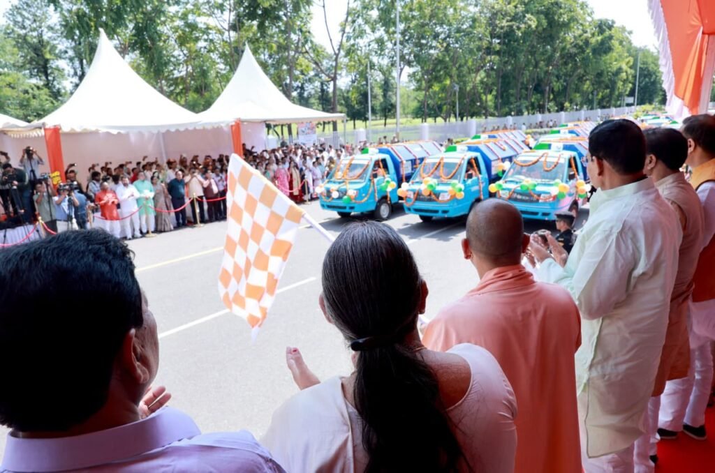 सीएम योगी आदित्यनाथ ने 250 ई-सीएनजी कूड़ा वाहनों को दिखाई हरी झंडी